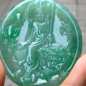 老坑冰糯种满色 文殊菩萨翡翠吊坠