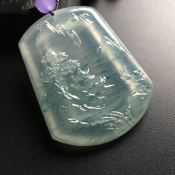 冰种飘花龙牌翡翠吊坠 尺寸:56*38.4*7.5