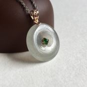 冰种晴水翡翠平安扣吊坠 尺寸 18.7x3.3 毫米