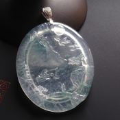 老种淡绿色山水牌翡翠吊坠 芙蓉种水翡翠吊坠