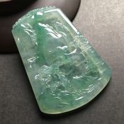 冰种飘绿山水牌 翡翠吊坠 尺寸64-42-5毫米