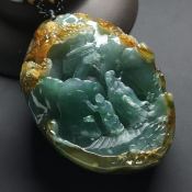 冰种黄加绿 深山访友翡翠吊坠 尺寸:62-45-12.8毫米