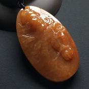 巧雕黄加绿鸟语花香 翡翠吊坠 尺寸:56-40-16毫米