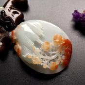 双色鸟语花香 翡翠吊坠 尺寸: 45-34-14mm