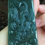 天然A货翡翠冰油种磨砂翡翠龙牌挂件 尺寸71.3*36.5*7.7
