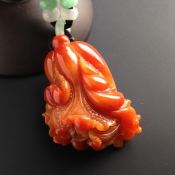 巧雕红翡百财 翡翠吊坠 尺寸47-36-19毫米