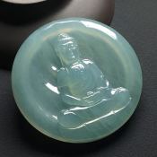 冰种晴水大日如来 佛翡翠吊坠 尺寸:52.8-6.3毫米