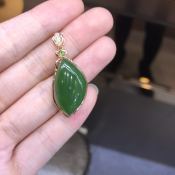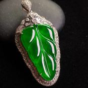 冰种辣绿叶子 翡翠挂件 裸石尺寸:24*15