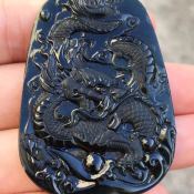 冰种墨翠龙牌吊坠 尺寸:51-35.5-6.9 送黑玛瑙挂绳