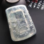 冰种淡晴水悠然自得翡翠吊坠 尺寸54-39-9毫米