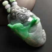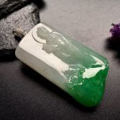 老坑料冰种辣绿文殊菩萨翡翠吊坠