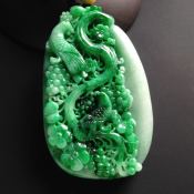 巧雕阳绿 花鸟 翡翠吊坠 尺寸62-38-11毫米
