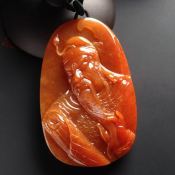 糯冰种红翡淡泊人生翡翠吊坠 尺寸47-31-3毫米