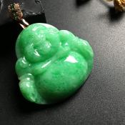 冰糯种满色笑口常开 佛翡翠吊坠 尺寸: 39-42-8mm