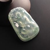 冰种飘彩佛公翡翠吊坠