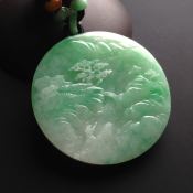 冰糯种满绿前程似锦 翡翠吊坠 细腻完美起光色辣大件