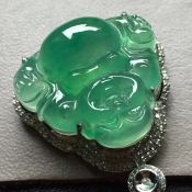 高冰果绿佛公 翡翠吊坠 裸石尺寸21.7*24.7*9