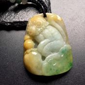 巧雕糯冰种带色年年有余 翡翠吊坠 尺寸:60-38-7毫米