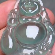 冰晴水布袋佛 翡翠吊坠 底色清雅