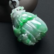高冰种飘翠福瓜 翡翠吊坠 尺寸:51-24-8毫米