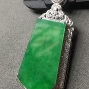 天然翡翠A货冰种冰绿素牌吊坠色泽艳丽种水足!