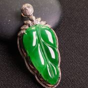 阳绿叶子 翡翠挂件 裸石尺寸:24*13
