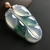 冰种飘花叶子 翡翠挂件 尺寸48-30-6毫米