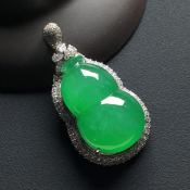 冰种满绿 葫芦翡翠吊坠 18k金*钻石镶嵌 整体尺寸:45.5-23.5-13*裸石29-18.5-7毫米