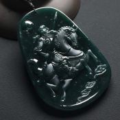 巧雕蓝水忠义关公 翡翠吊坠 尺寸:76-50-5毫米
