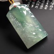 冰阳绿无事牌翡翠吊坠 裸石尺寸:20.5*13.3*4.1