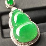 冰种阳绿 葫芦翡翠吊坠 18k金豪华镶嵌