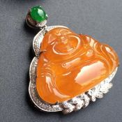 天然冰种黄翡吊坠 18K白金镶嵌 大小:27.8*21.4*5mm