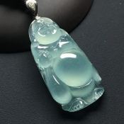 高冰种晴底布袋佛翡翠吊坠 18k金扣 尺寸:42-21-8毫米