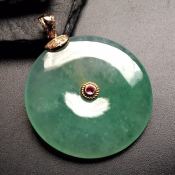 带色平安扣 翡翠挂件 尺寸: 36-5mm
