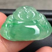 阳绿佛公 翡翠吊坠 种老细腻 色阳翠绿