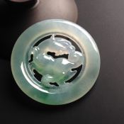 冰种飘花 麒麟翡翠挂件 尺寸52-6.5毫米