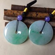 冰飘阳绿平安扣 翡翠挂件 尺寸42.1*6.6+39.7*6.4