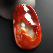 糯冰种红翡朝拜 翡翠吊坠 尺寸66-39-9毫米