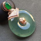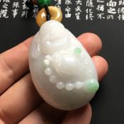 阳绿佛公 翡翠吊坠 真金真钻镶嵌 完美 种水超好