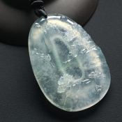 冰种飘花大好河山翡翠吊坠 尺寸:53-36-7.7毫米