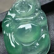 甜绿布袋佛 翡翠挂件 尺寸:32*21.8*4.4mm