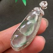 冰飘花翡翠福豆吊坠 色泽艳丽