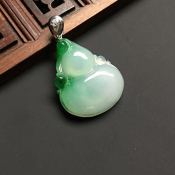 冰种飘绿 葫芦翡翠吊坠 白金扣 尺寸25-21-6.5毫米