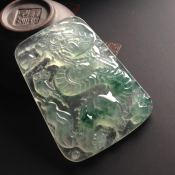 冰玻种飘花龙牌翡翠吊坠 尺寸56-43-7.5毫米