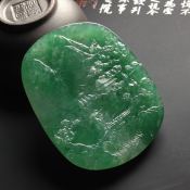 糯冰种绿底淡泊人生翡翠吊坠 尺寸55-43-6毫米