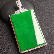 阳绿满色 无事牌翡翠吊坠 尺寸:36*24整体尺寸:50*26*8