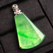 冰糯种阳绿翡翠吊坠 真金真钻镶嵌完美种水超好玉质细腻