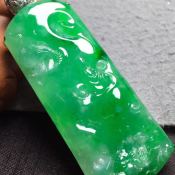 冰阳绿 龙牌翡翠吊坠 裸石尺寸40.2*32*3整体50.5*32.6*6