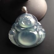 冰种荧光翡翠佛公 翡翠吊坠 裸石尺寸38-42-8毫米