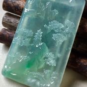 冰飘阳绿山水翡翠吊坠 尺寸49.6*32*6.3